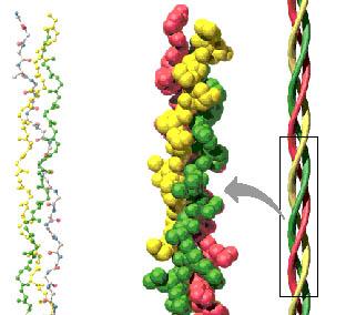 ESTRUCTURA SECUNDARIA.- Es la naturaleza helicoidal que va adquiriendo las cadenas de aminoácidos que conforman a las proteínas. El colágeno, la proteína más abundante en el cuerpo humano, es un buen ejemplo